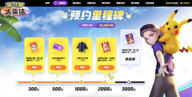 相比《决胜巅峰》给自己定下的1800万人最高预约档位,《宝可梦大集结》则来到了惊人的3000万人,且这一目标已经完成近4/5。这背后多少凸显了宝可梦IP的巨大号召力,尤其是在受众层面,该IP可以说是“老少通吃”。